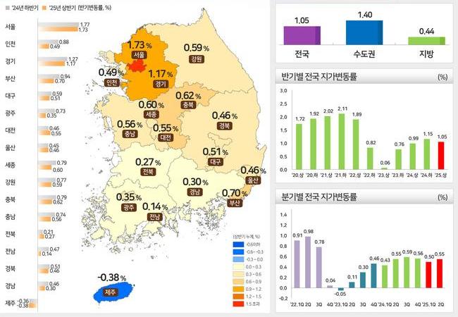 2025년 상반기 전국 지가 변동률