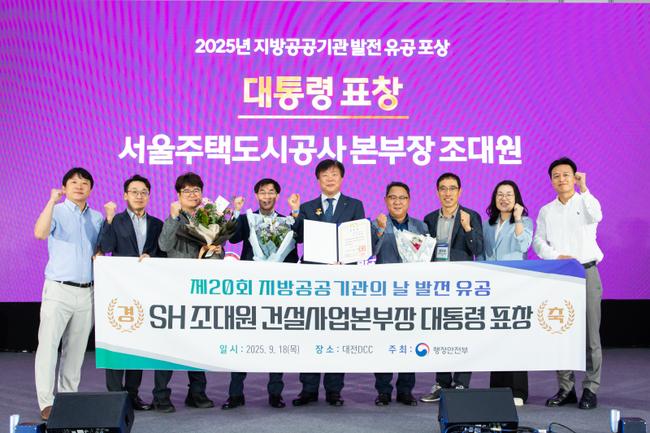 서울주택도시개발공사(SH, 사장 황상하)는 18일 행정안전부가 개최한 `제20회 지방공공기관의 날` 기념식에서 조대원 건설사업본부장이 건설 산업 혁신 및 국가 주요 정책 실현에 기여한 공로를 인정받아 `지방공공기관 발전 유공 대통령 표창`을 수상했다고 밝혔다.
