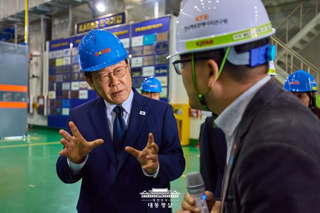 이재명 대통령이 대전 대덕연구단지 내 한국핵융합에너지연구원을 찾아 초전도 핵융합장치 KSTAR 운영 현황과 미래 에너지 전략을 점검했다.