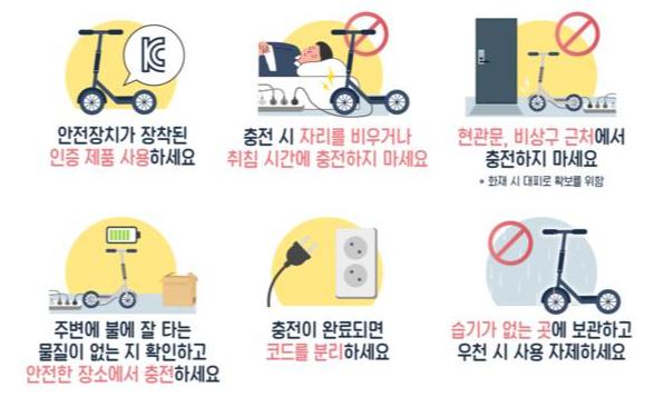 소방청이 최근 아파트 등 주거공간에서 전동킥보드와 전기오토바이 충전 중 발생한 화재사고가 잇따르자 생활 속 리튬이온배터리 화재예방대책을 22일부터 본격 추진한다.