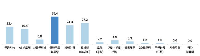 최근 3년간 기업들의 디지털 신기술 도입 현황을 보면 △클라우드 컴퓨팅(35.4%), △빅데이터(24.3%), △인공지능(AI·22.4%), △AI 반도체(19.4%) 순으로 나타났다. 인공지능과 관련 기술에 대한 관심이 두드러졌다.