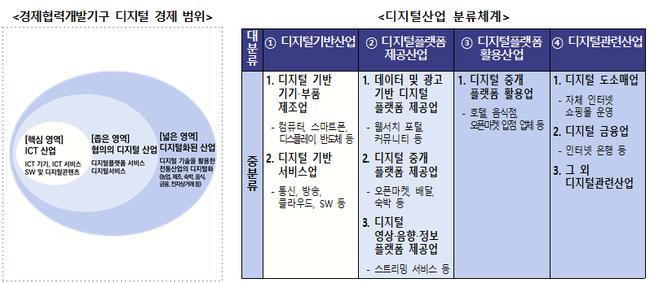 이번 조사는 OECD 국제 기준을 반영해 디지털 기반산업, 디지털 플랫폼 제공·활용산업, 디지털 관련산업 등 9개 중분류를 대상으로 진행됐다.