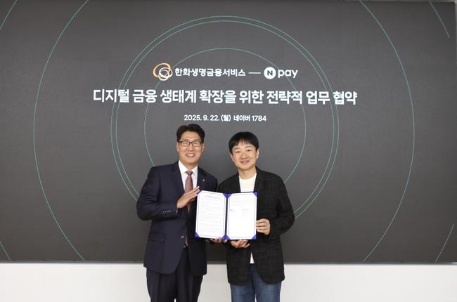 네이버페이(Npay)와 한화생명금융서비스는 22일 성남시 분당구 네이버1784에서 디지털 금융 생태계 확장을 위한 전략적 업무 협약을 체결하고, 결제 서비스와 AI 기반 보험 분석 등 다양한 협력사업을 추진하기로 했다.